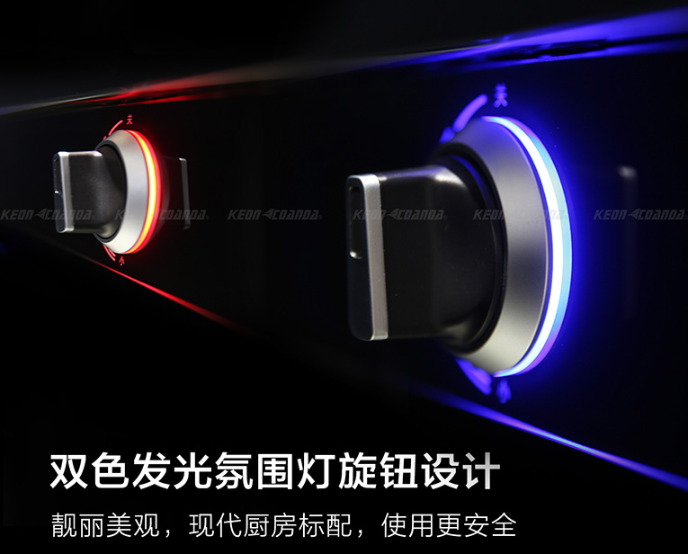 集成灶十大品牌科恩智能炫彩系列集成灶D620采用非凡設(shè)計,五合一全能配置,結(jié)合造就簡約流暢的現(xiàn)代風(fēng)格,與整體櫥柜搭配彰顯氣質(zhì),體現(xiàn)尊貴華麗風(fēng)范。機頭采用藍(lán)色氛圍燈,雙色發(fā)光氛圍燈灶具旋鈕設(shè)計,整機不僅顯得靚麗美觀,為廚房增添光彩,灶具旋鈕雙色設(shè)計更能保證集成灶的使用安全。