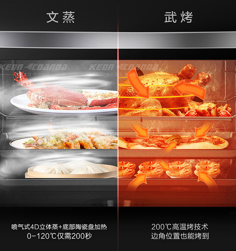 更值得一提的是,科恩智能蒸烤消一體集成灶采用4D立體直噴蒸烤模式,四面受熱更均勻,多種蒸烤模式隨心選,廣域控溫,加熱速度一提再提,熱風對流立體烘烤色香味俱全,全面喚醒食材鮮美營養(yǎng)。雙聚能環(huán)設(shè)計,使熱量集中不分散,熱效率更高,烹飪菜肴更美味,更節(jié)能!