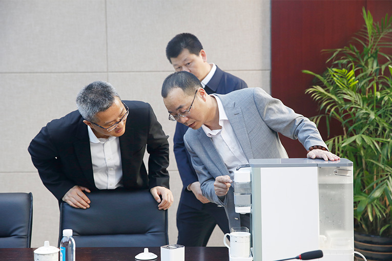 徐書記一行先后參觀科恩電器辦公環(huán)境以及大型現(xiàn)代化廠區(qū),認真聽取科恩的發(fā)展歷程、研發(fā)隊伍建設(shè)、管理制度、黨建文化等情況介紹,并對公司管理、發(fā)展、品牌以及產(chǎn)品的高端定位予以肯定,重點對新產(chǎn)品研發(fā)項目科恩第四代移動水吧--“泡茶凈飲一體機”產(chǎn)品進行了詳細了解,無空間、無水源限制的科恩新款移動水吧,一舉顛覆了用戶對于傳統(tǒng)凈水設(shè)備的印象,引領(lǐng)行業(yè)產(chǎn)品革新,受到徐書記一行的高度認可,并提出做強做大的要求!