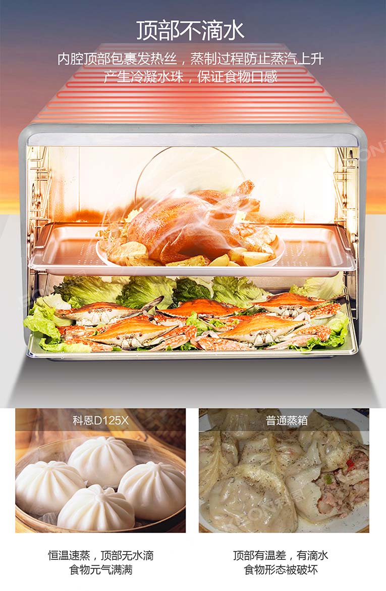集成灶十大品牌、廚電行業(yè)十大品牌科恩集成灶內(nèi)置十大烹飪模式,溫度、火候、時間自由掌控,廚房小白輕松蒸出美味健康食物。另外,“蒸”就怕的就是有水進入到食物里面去了,那樣的話食物就會變味,科恩集成灶就不會發(fā)生這樣的情況。4D噴氣式蒸烤,頂部也不漏水,蒸出來的食物就是原汁原味,口感更是能夠促動你的味蕾。