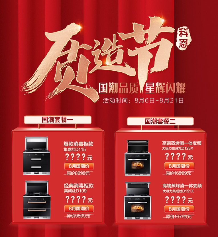 集成灶十大品牌、廚電行業(yè)十大品牌科恩八月質(zhì)造節(jié)大型全國(guó)促銷活動(dòng)強(qiáng)勢(shì)來襲,國(guó)潮品質(zhì),星輝閃耀,絕對(duì)給你想不到的洪荒之“利”!
