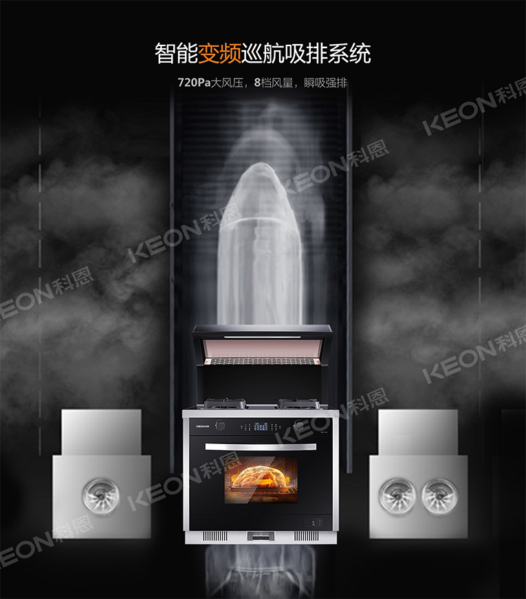 集成灶十大品牌、廚電行業(yè)十大品牌科恩集成灶采用變頻巡航增壓技術(shù),擁有21m3/min爆吸,在源頭上防止油升騰擴(kuò)散,強(qiáng)大的吸力將油煙完全排除,同時(shí)帶有煙機(jī)聯(lián)動(dòng)功能,打開燃?xì)庠罹湍芪哂蜔?,讓油煙無(wú)處可逃,徹底吸排廚房油煙,讓女性不再忍受油煙困擾。