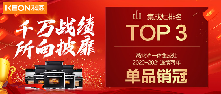 集成灶十大品牌、廚電行業(yè)十大品牌科恩集成灶2021京東自營(yíng)店戰(zhàn)報(bào)公布,力壓群雄,11月11日00:00~23:59科恩集成灶在京東自營(yíng)平臺(tái)集成灶行業(yè)榮獲第3名佳績(jī),蒸烤消一體集成灶2020—2021連續(xù)兩年單品銷(xiāo)冠!飄紅數(shù)字再一次證明了科恩強(qiáng)大的實(shí)力!