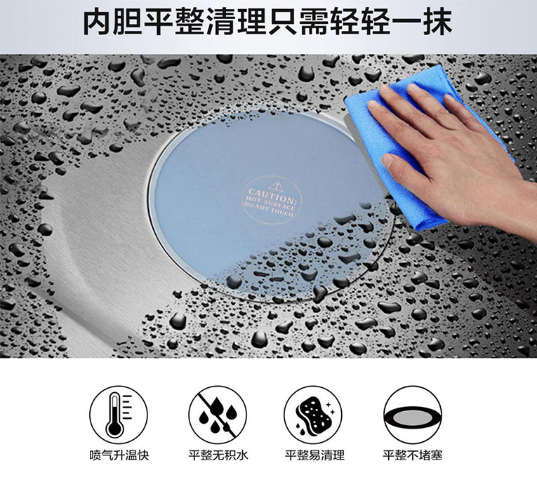 科恩蒸烤消一體集成灶能蒸善烤,值得一體的是該系列產(chǎn)品采用“薩萊米”進(jìn)口陶瓷加熱,跟普通集成灶不同的是,傳統(tǒng)蒸盤(pán)不易清潔、易堵塞,在蒸制過(guò)程中排水孔容易堵塞導(dǎo)致故障,而陶瓷加熱盤(pán)噴氣升溫快、平整無(wú)積水、易清理、不堵塞,內(nèi)膽只需輕輕一抹就能潔凈。