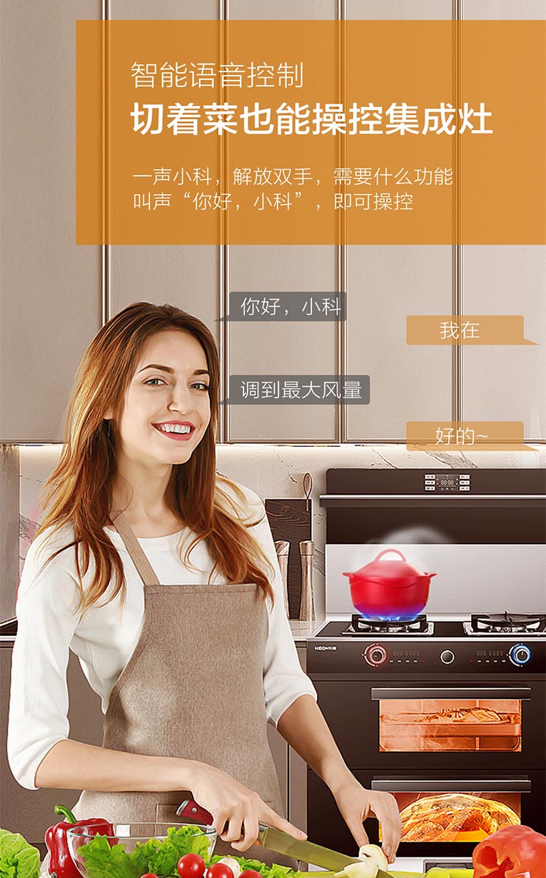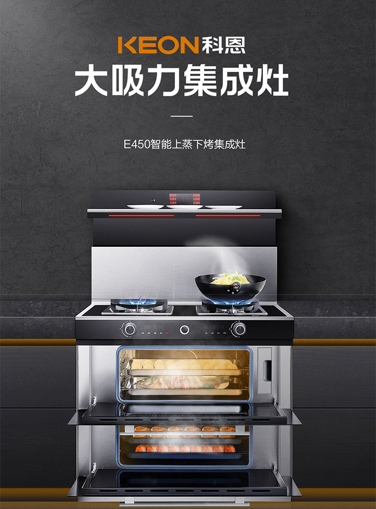 另外,科恩E450上下蒸烤集成灶還搭載智能語音控制,“你好小科”輕松掌控集成灶,大吸力無油煙,能蒸善烤美味雙收,一次性給你滿漢全席。這個(gè)冬天,安排一下集成灶十大品牌、廚電行業(yè)十大品牌科恩E450上下蒸烤集成灶,解放雙手,暖心又暖胃!