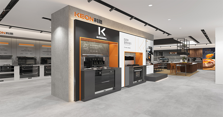 終端形象作為品牌的“臉面”,承載著企業(yè)形象的大部分內(nèi)容,終端的視覺環(huán)境、空間、陳列環(huán)境都能直接影響到消費(fèi)者對(duì)于其品牌形象價(jià)值的認(rèn)知,科恩集成灶建立全新的視覺形象,是其品牌發(fā)展中的重要一步,也為其與消費(fèi)者更加深層的溝通建立了橋梁。