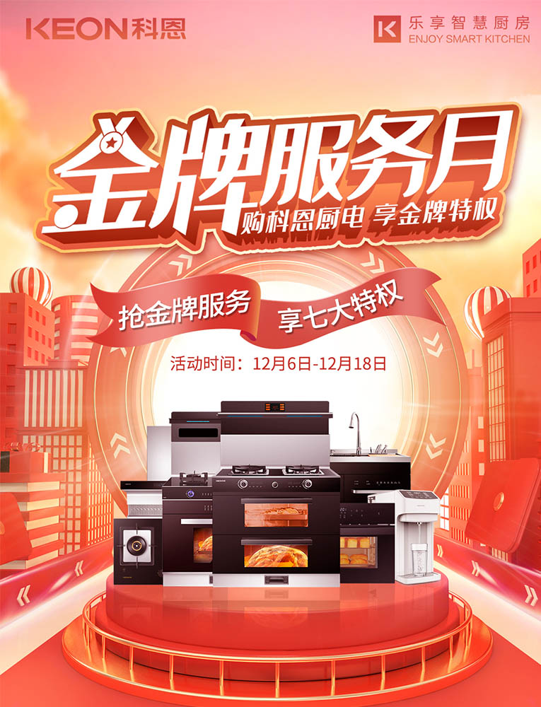 科恩“金牌服務(wù)月”經(jīng)過精心籌備盛大開啟,購科恩廚電,享金牌特權(quán)!以領(lǐng)軍者姿態(tài),開啟行業(yè)服務(wù)新典范。用戶不但可以通過科恩全國專賣店直接獲取服務(wù),還可以通過線上報名、砍價形式獲得權(quán)益,結(jié)合線下門店金牌服務(wù),聚焦客戶最及時服務(wù)需求,七大特權(quán)限時搶購!