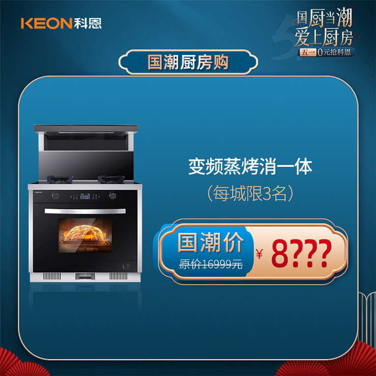 五一黃金周來臨,為了讓千萬家庭享受“廚房新國潮科恩新三件”帶來的魅力,科恩集成灶持續(xù)發(fā)力,全國聯(lián)動擼起袖子,“國廚當(dāng)潮,愛上廚房”五一0元搶科恩,4月28日-5月10日,進科恩集成灶全國門店,六大特權(quán)傾情放送!