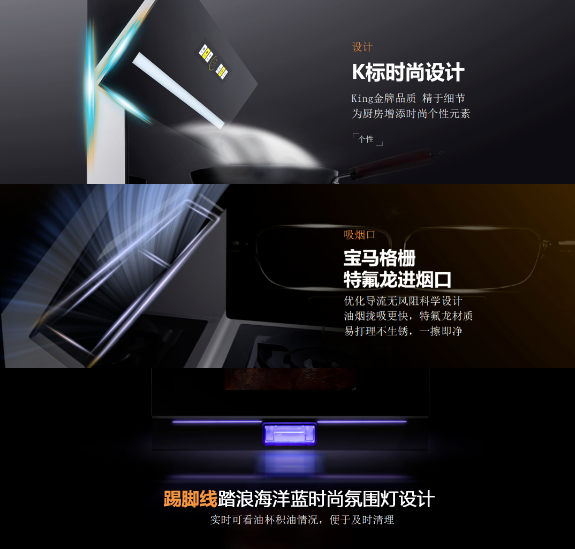 科恩C系列兩款王炸產(chǎn)品:C200消毒柜款集成灶、C260蒸烤消炸一體集成灶,在預(yù)熱期間就極具熱度,如今終于華麗登場,從外觀來看,此次的C系列完全顛覆了以往集成灶笨重且不夠美觀的形象,創(chuàng)造性的采用了企業(yè)標(biāo)識“K”字型時尚機(jī)頭,寶馬經(jīng)典格柵設(shè)計進(jìn)煙口,以及踏浪海洋藍(lán)時尚氛圍燈底座設(shè)計,盡覽奢美,構(gòu)筑視覺與觸覺的全新想象,一眼,鮮明,再睹,目不轉(zhuǎn)睛!