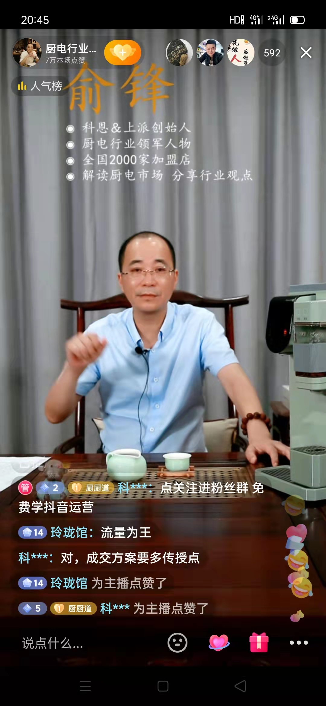 直播從19:30準(zhǔn)時開始,俞總在大家的萬眾期待中閃耀亮相,集團董事、廚電大咖效應(yīng)使得眾多業(yè)內(nèi)外精英及投資創(chuàng)業(yè)者紛紛進入直播間聆聽取經(jīng),同時,豐富的直播福利和俞總娓娓道來、由淺入深的商業(yè)思維也提升了大眾的參與度,引起了用戶對于目前經(jīng)濟形勢的廣泛關(guān)注和討論,可以說,這是一場具有戰(zhàn)略性、前瞻性、針對性的行業(yè)直播盛宴。