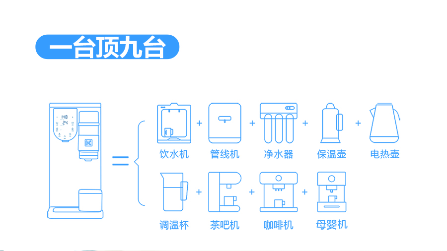 科恩多功能移動式凈水器,憑借UV殺菌、凈廢分離、茶吧泡茶功能,完全替代了廚下機、熱水壺、保溫壺、飲水機、管線機等設(shè)備,以無空間、無水源限制的優(yōu)勢,徹底顛覆了傳統(tǒng)凈水器諸多局限,從根本上滿足用戶對不同環(huán)境的飲水需求,產(chǎn)品還通過了中國CMA106項水質(zhì)標(biāo)準(zhǔn)檢測,水質(zhì)達到了直接飲用標(biāo)準(zhǔn)!