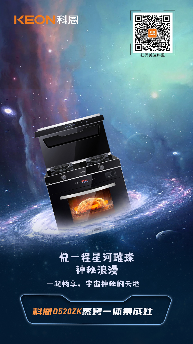 科恩D520ZK蒸烤一體集成灶以星際概念滲透廚房空間,方寸天地縱覽無垠闊境,廚房與星際云端跨界聯(lián)動,未來感與前沿科技相得益彰,科恩D520ZK由此誕生。