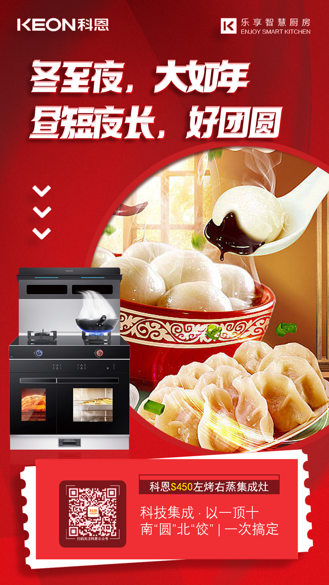 科恩S450左烤右蒸智能語(yǔ)音集成灶,上煮下蒸一次搞定,5.2kW大火力,湯圓分分鐘就出鍋,同時(shí),下置左烤右蒸,雙腔獨(dú)立控制,120℃高速蒸,餃子管夠!80L家宴級(jí)容量,配上八大智能蒸烤模式,只需準(zhǔn)備好所需食材,剩下的,放下交給TA,能蒸善烤美味雙收,一次性給你滿(mǎn)漢全席,美味無(wú)需等待,把時(shí)間留給餐桌上的歡笑吧!