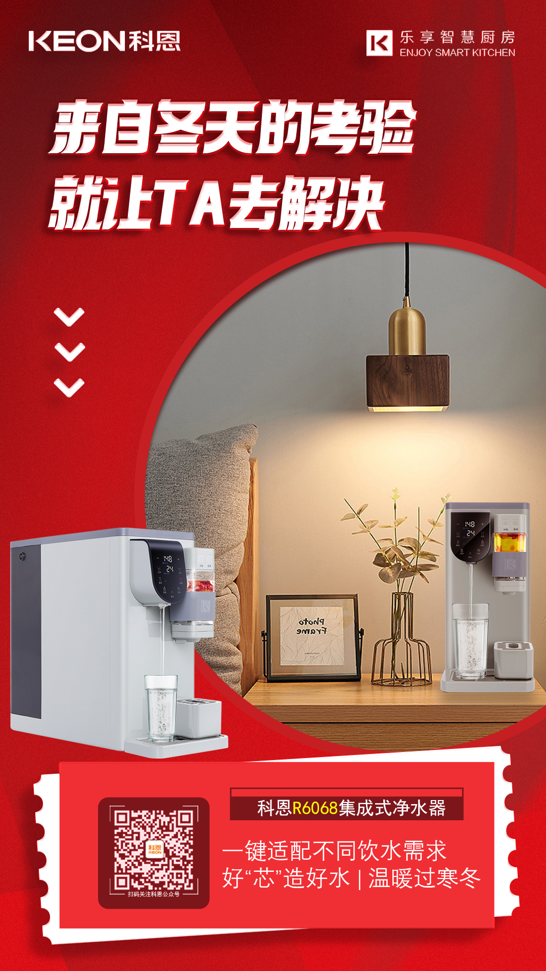 科恩集成式凈水器,RO精濾,UV殺菌,集凈飲加熱于一體,采用即熱和智能溫控技術(shù),實(shí)現(xiàn)快速制熱,無(wú)極控溫,水量可調(diào),滿(mǎn)足不同人群的用水需求,無(wú)論是老爸的一壺茶、親友的咖啡、果茶、寶寶的沖奶水,一應(yīng)俱全,讓全家人在這個(gè)冬天隨時(shí)喝上安全健康水,暖胃更暖心。