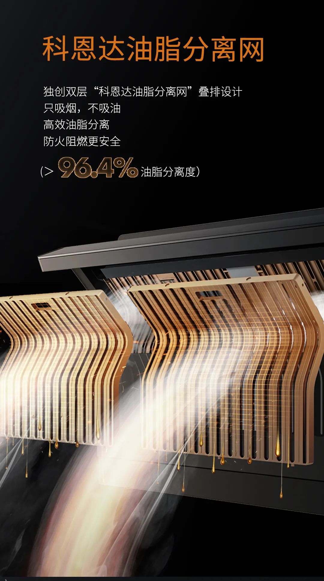 6K省心超體驗(yàn)二:科學(xué)設(shè)計(jì)免清洗,耐用省心!科恩達(dá)油脂分離網(wǎng)完美實(shí)現(xiàn)煙機(jī)免清洗??贫鬟_(dá)油脂分離網(wǎng)可實(shí)現(xiàn)高效油脂分離,油脂分離率>96%,實(shí)現(xiàn)油脂不進(jìn)門,煙機(jī)免清洗的理想狀態(tài)。