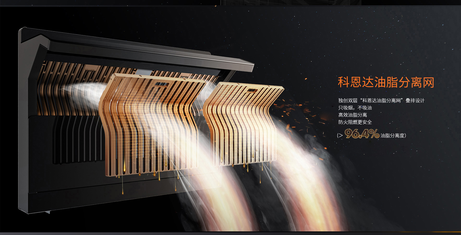 科恩達(dá)油脂分離網(wǎng),雙層疊排設(shè)計(jì),杜絕明火進(jìn)入煙腔,防火阻燃更安全!