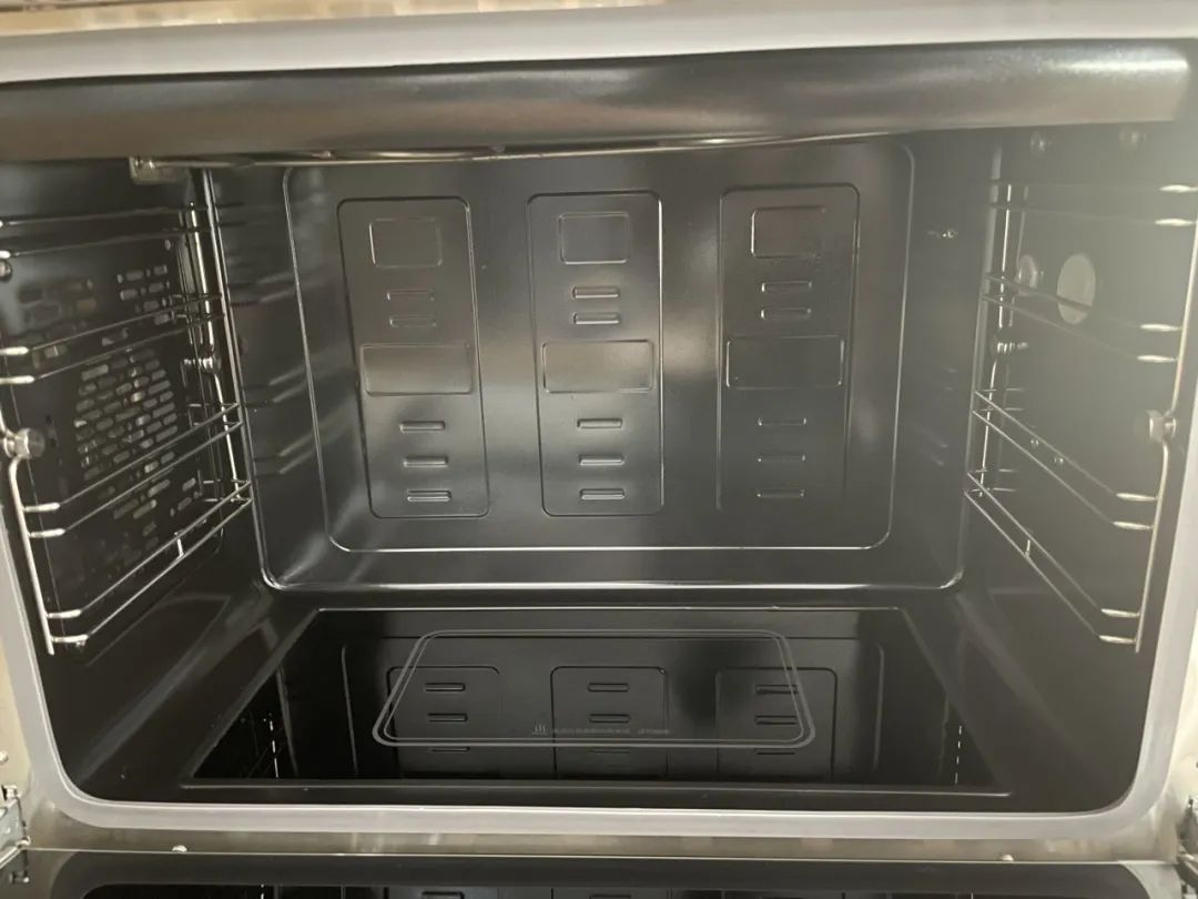 蒸烤箱內(nèi)部采用一體拉伸搪瓷內(nèi)膽,不易積食物殘?jiān)?、水垢和油漬,清理更便捷。