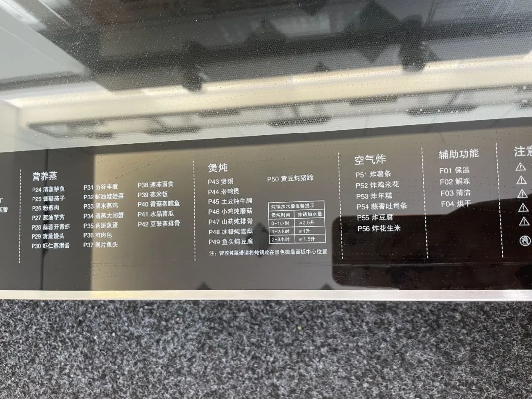 在蒸箱門板上我們能看到有56道菜肴,內(nèi)置菜譜,可一鍵開啟相應(yīng)的蒸烤炸燉功能,無需調(diào)節(jié)時(shí)間、溫度,即使小白也能當(dāng)大廚。