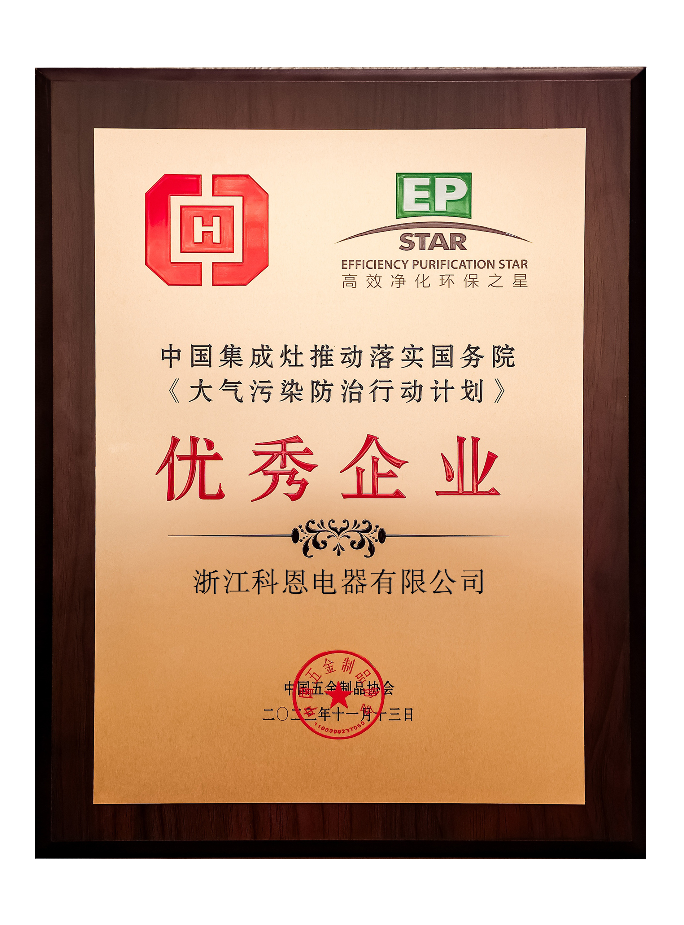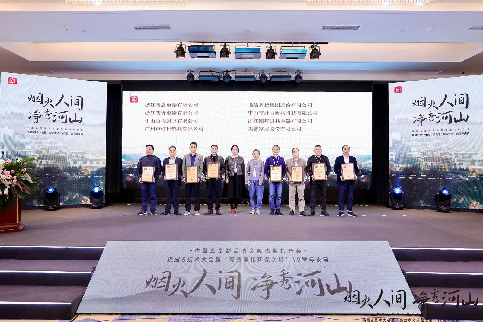 2023年11月28日,主題為“煙火人間 凈秀山河”有中國五金制品協(xié)會召開的“中國五金制品協(xié)會吸油煙機(jī)分會·換屆&技術(shù)大會暨‘高效凈化環(huán)保之星’10周年慶典”在杭州隆重舉辦。會上發(fā)布了獲得本屆“高效凈化環(huán)保之星”的優(yōu)秀企業(yè),并向多年來連續(xù)參與此項(xiàng)目并表現(xiàn)突出的企業(yè)給予了嘉獎。科恩再一次榮獲“中國五金制品協(xié)會-理事單位”及“中國集成灶推動落實(shí)國務(wù)院《大氣污染防治行動計(jì)劃》-優(yōu)秀企業(yè)”!