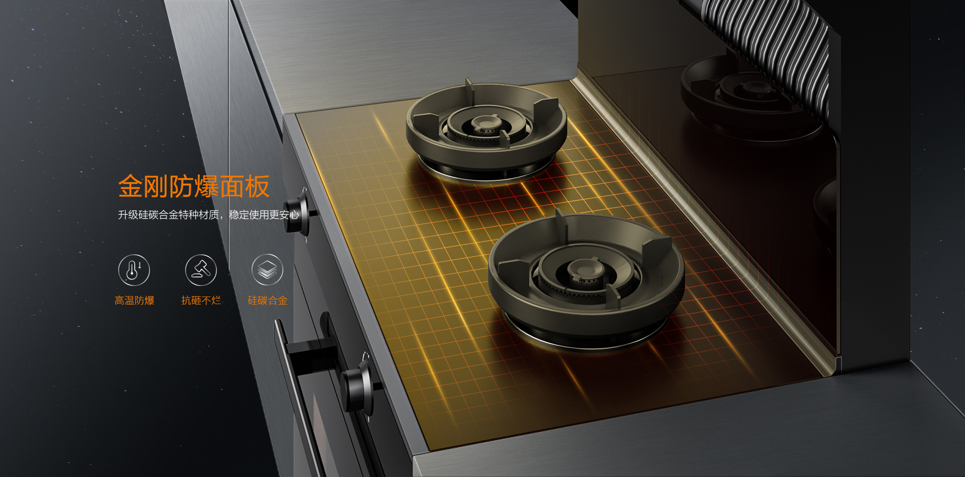 防爆金剛板解決廚房安全隱患!硅碳合金特種材質(zhì)可耐高溫1500℃,高于國(guó)標(biāo)3倍以上,更安全!