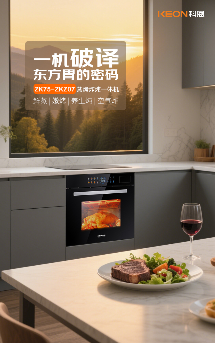 夏意漸濃,煙火煥新。科恩全新打造蒸烤炸燉一體機(jī)ZKZ07,以科技之力,一機(jī)破解東方胃的密碼,讓蒸汽縈繞、脆香迸發(fā)、炙烤生香,重構(gòu)一方煙火里的味覺(jué)宇宙!