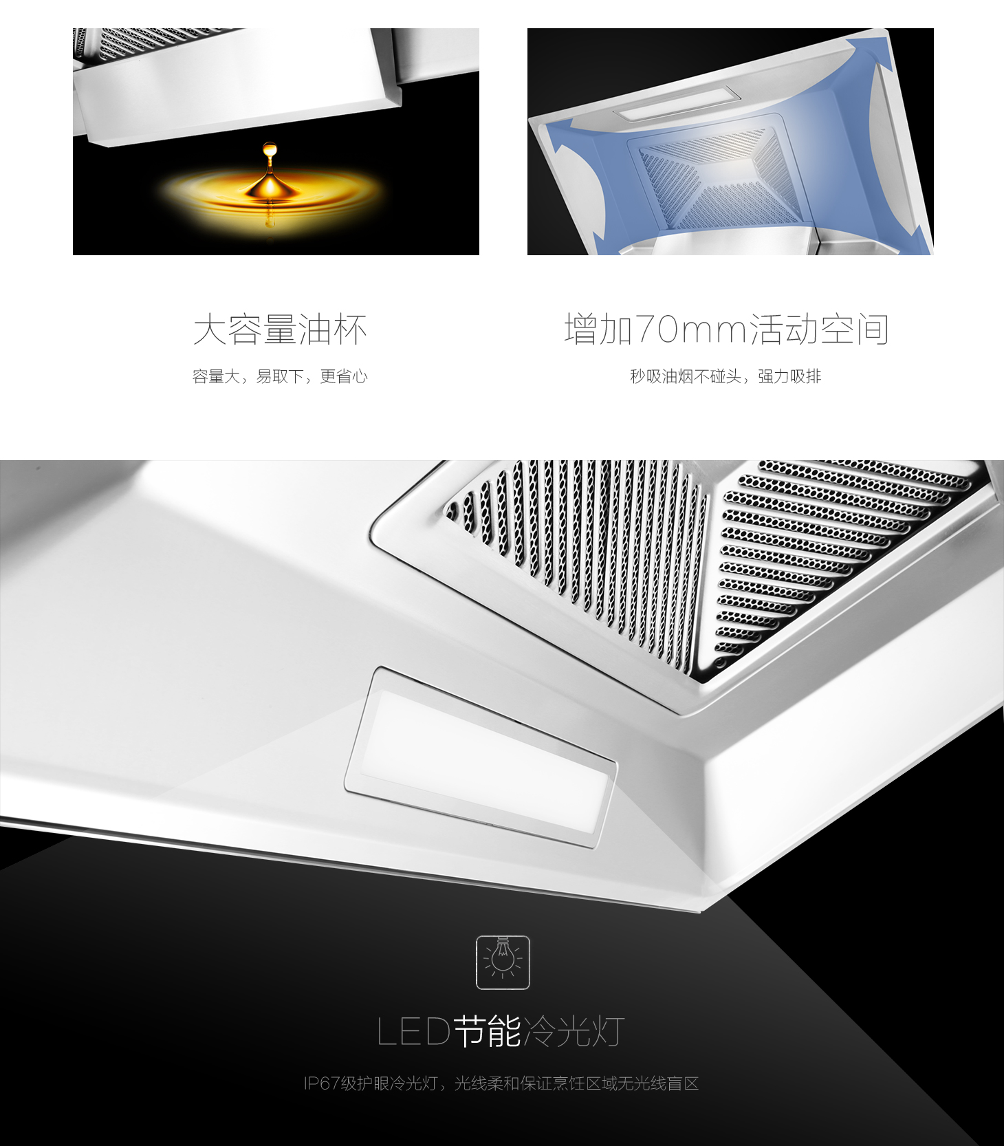 增加70mm活動(dòng)空間,秒吸油煙不碰頭。