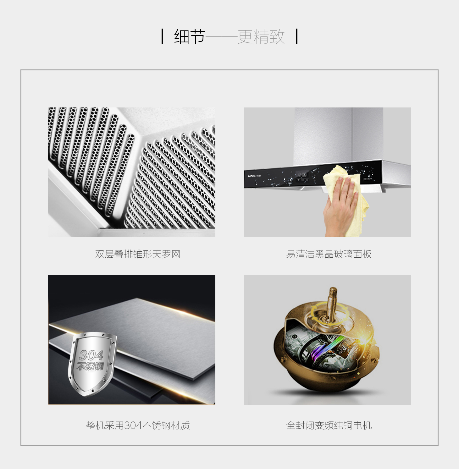 雙層疊排錐形凈濾網(wǎng),導(dǎo)油分離油煙更徹底。
