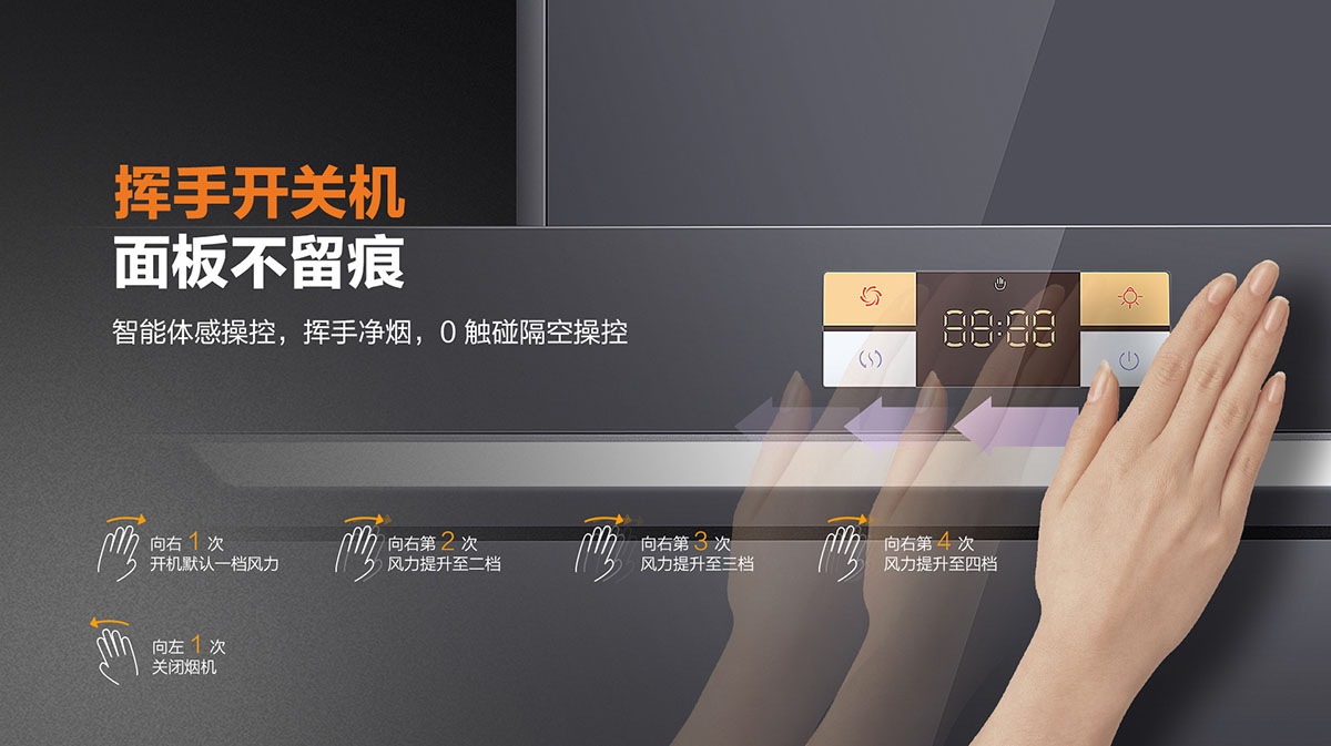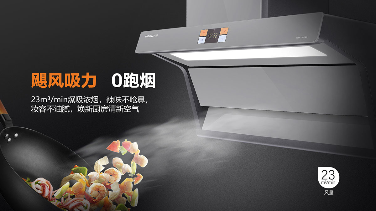 上下雙吸,下強(qiáng)吸上快攏,油煙0逃逸