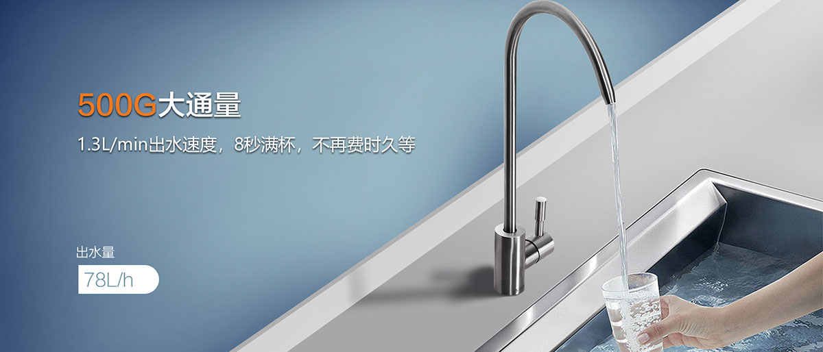 - 500G大通量,1.3L/min出水速度