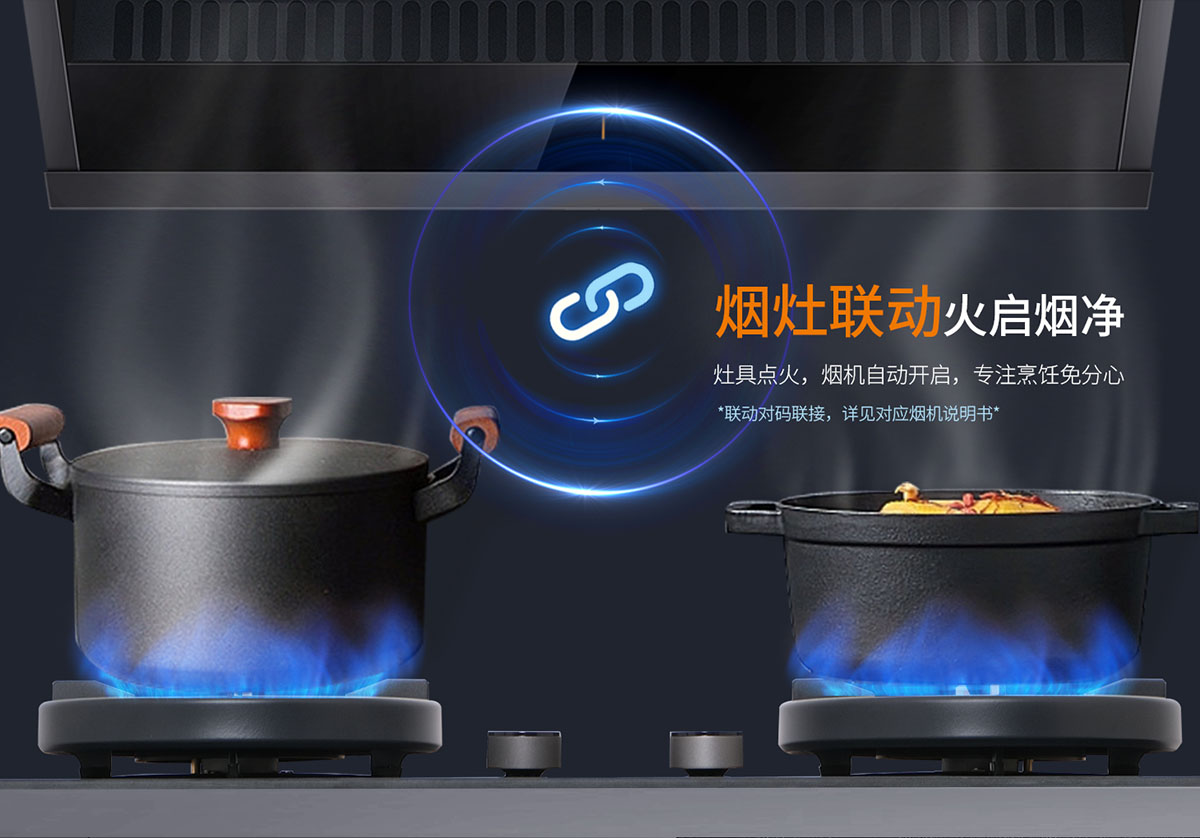 - 煙灶聯(lián)動,火啟煙凈,專注烹飪免分心
