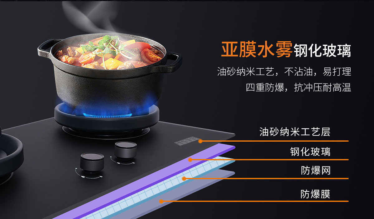 - 亞膜水霧鋼化玻璃,油砂納米工藝,不沾油,易打理