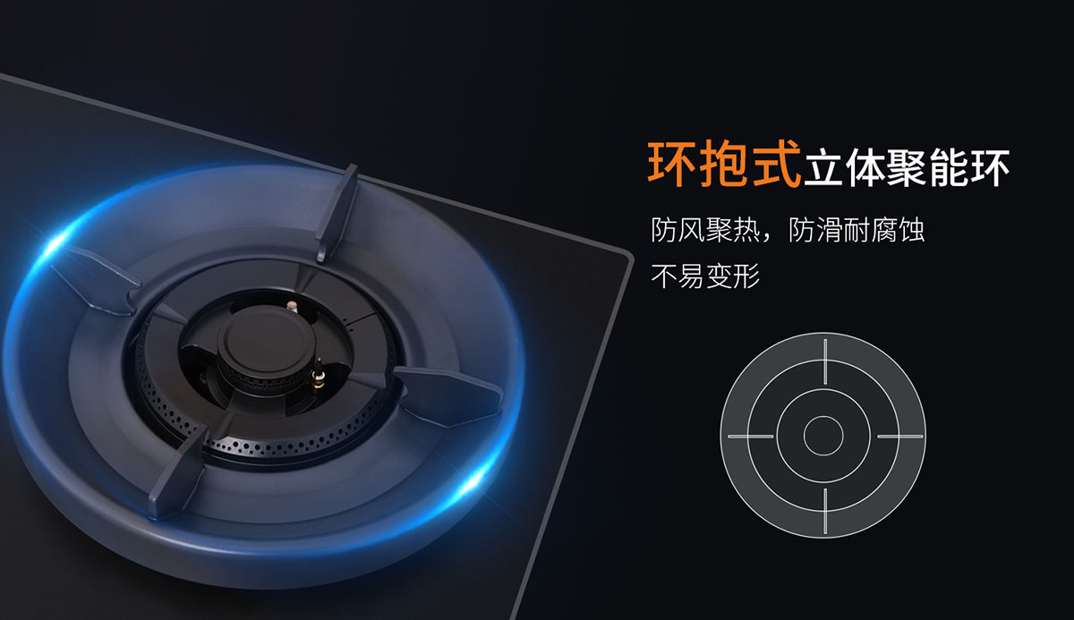- 環(huán)抱式立體聚能環(huán),防風聚熱,提升熱效